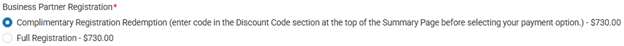To redeem the complimentary registrations included in your partnership package: